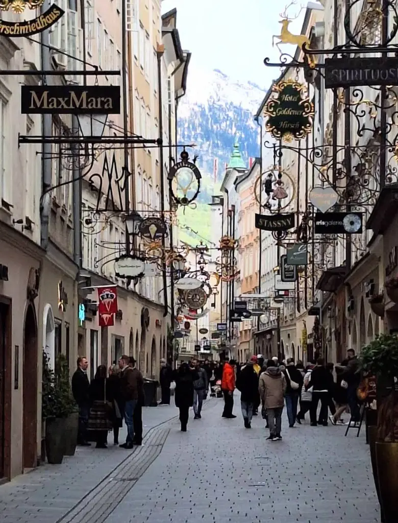 這裡聚集滿多餐廳,適合安排晚餐;街區多家莫札特巧克力的伴手禮店,有各式包裝從平價到精品價格都有,適合買伴手禮的一條街,但建議不要超過六點啊(令人羨慕的工作時間