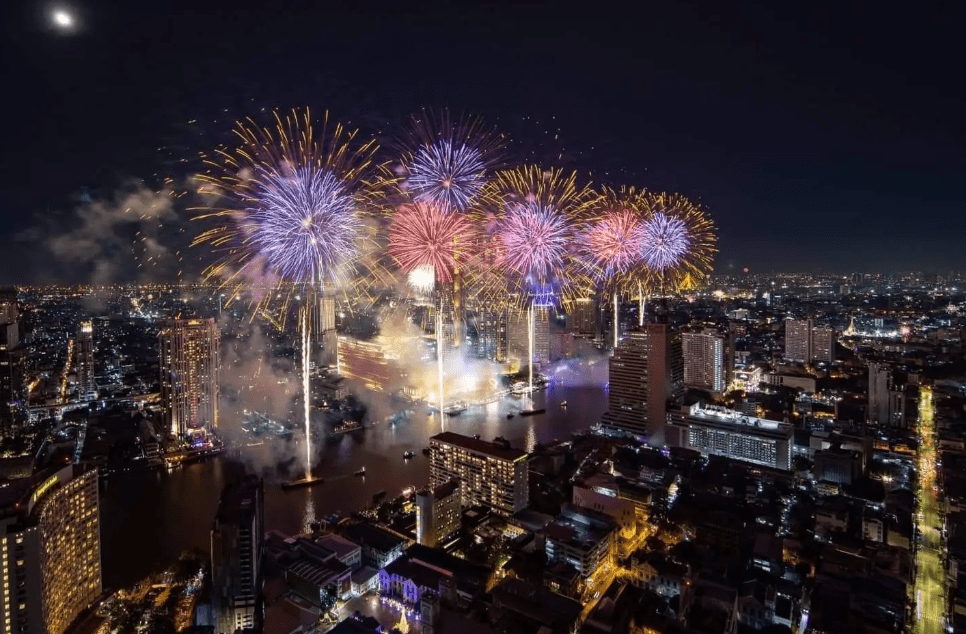 其實跨年這裡的煙火可看性很高,煙火會結合湄南河畔全長 1,400 米的河景,施放上萬枚煙火。