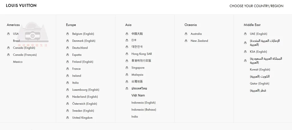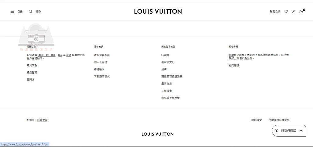 1. 進入 LV 官網,滑到最下方點選「國家/地區」。