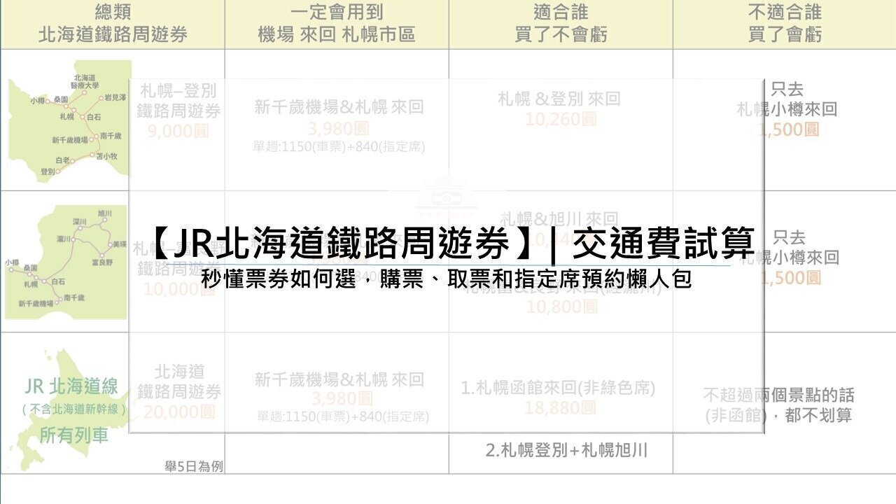 • 一圖看出北海道鐵路周遊券如何買最划算。