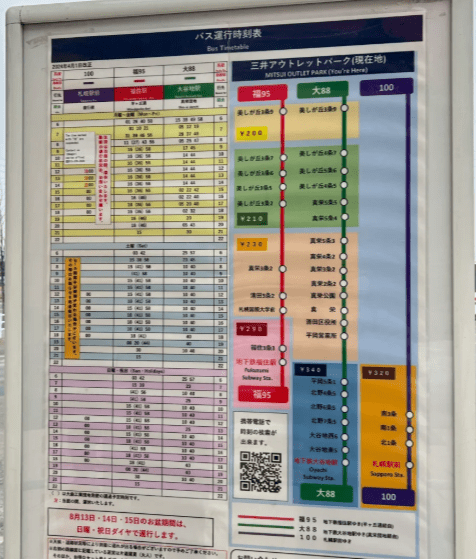 • 下車按鈴 (慘痛教訓): 車上有螢幕顯示下一站,快到 「三井 OUTLET PARK (Mitsui Outlet Park)」 時,請一定要按鈴! 不要以為大家都要下車就不用按。我曾經因為沒按鈴,司機以為沒人要下直接開走,結果我在下一站下車,在大雪中走了 30 分鐘才走回來…。