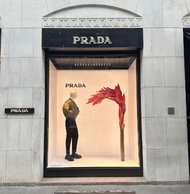 - Prada: 這條街上有分男裝與女裝店。逛累了記得去 Prada 收購的百年甜點店 Marchesi 1824 喝杯咖啡,感受一下義大利貴婦的下午茶時光 。
